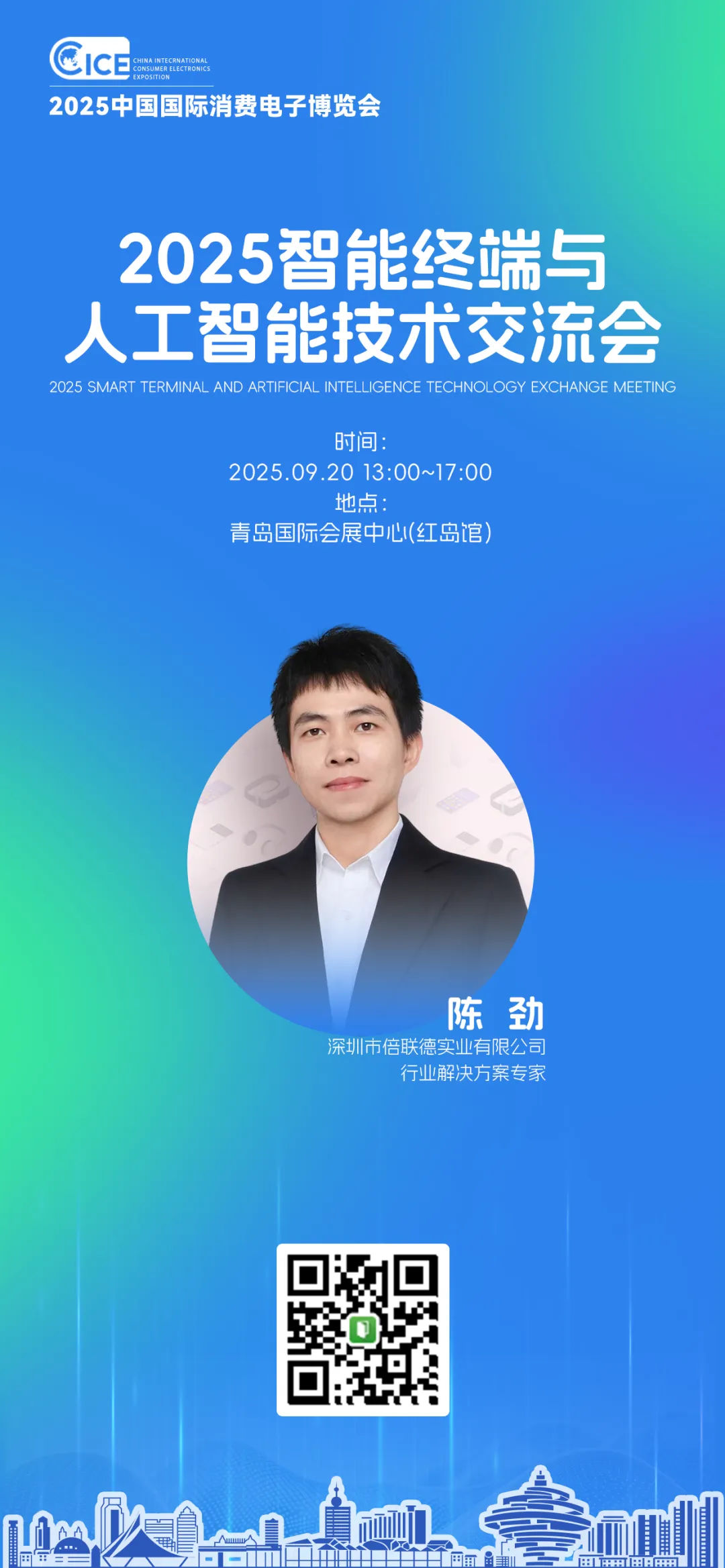 核心亮点:深圳市倍联德实业有限公司行业解决方案专家陈劲,将现场拆解智能终端与 AI 融合的前沿趋势、落地痛点与创新解法,为您呈上技术与需求同频的 “破局思路”~