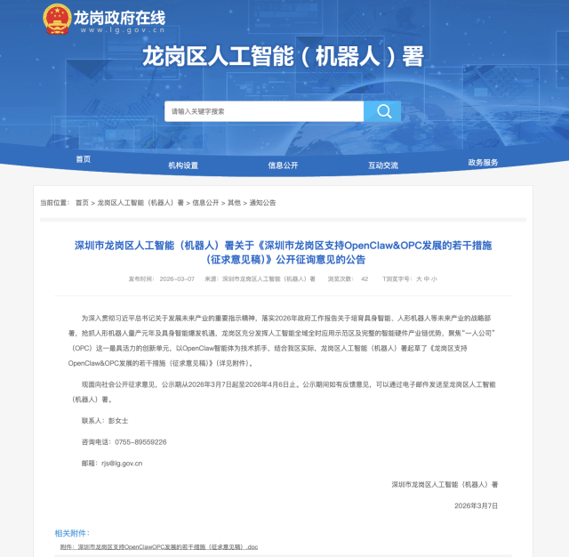 3月7日龙岗区正式发布支持OpenClaw&OPC发展十条措施(征求意见稿),以“零成本创业”为核心:硬件购置30%补贴、数据服务50%补贴、关键代码贡献最高200万奖励,全力打造全球智能体创业首选地!
