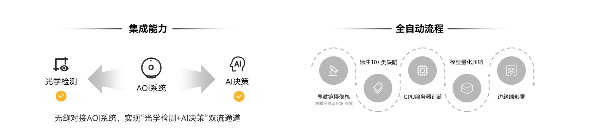 精准度 :1.误判率下降82%(AOI 30% → AI 5.4%)2. 支持10+类复杂缺陷